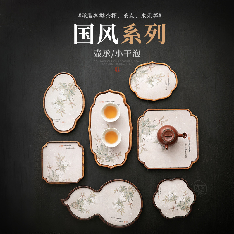 小型胡桃木茶盤茶台精致茶器茶トレー壺承乾泡盤実木乾泡台茶席セット