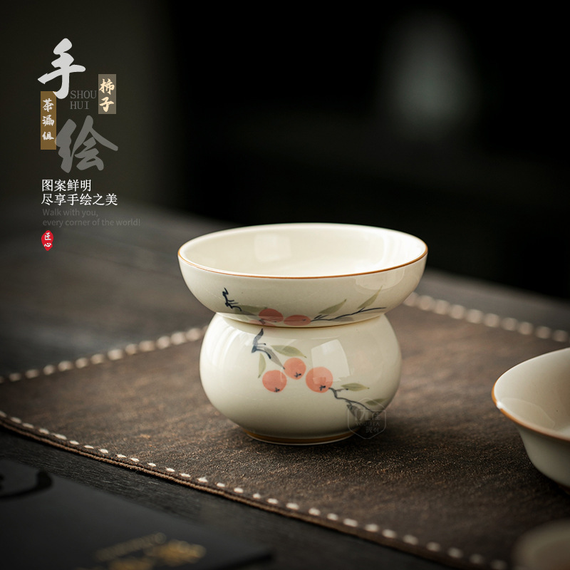 柿如意茶漏茶濾過一体陶磁器茶フィルタフィルタネット家庭用茶間隔工夫茶器部品