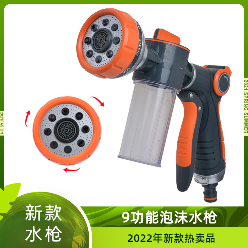 新品バブルウォーターガン洗车ウォーターガン洗车器9机能バブルウォーターガンガーデニング水やりペットお风吕シャワー