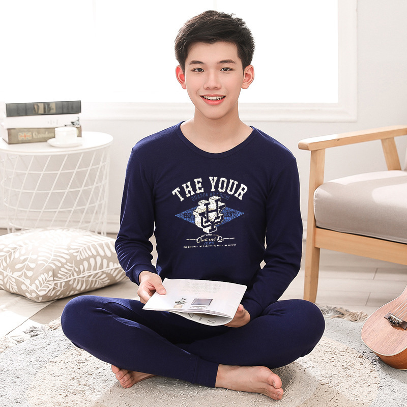 青少年の秋の服の秋のズボンのスーツの純綿の男性の大きい子供は学生の保温の下着の純綿の子供の綿のセーターを大きくします。