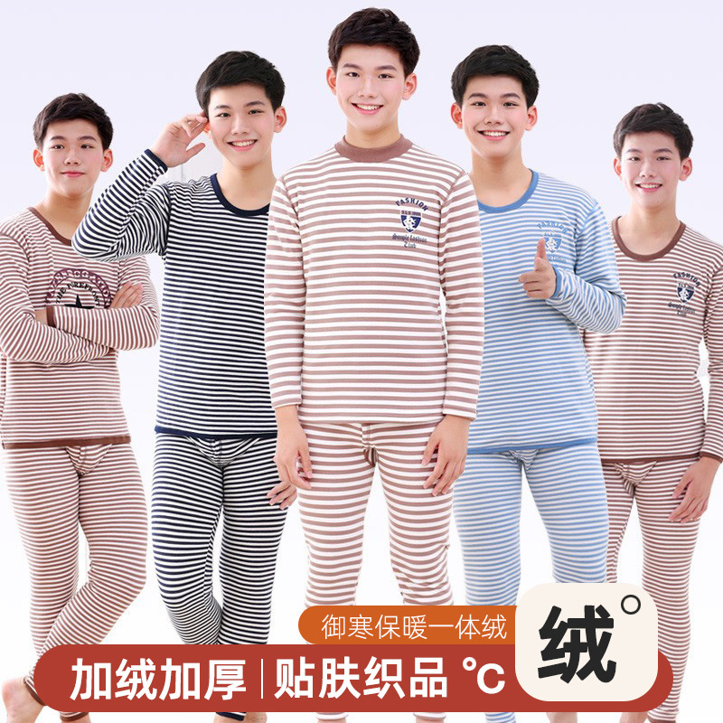 青少年の男の子と子供の下着セットは子供の秋の服の秋のズボンの冬の大きい子供の保温の下着の学生を厚くします。