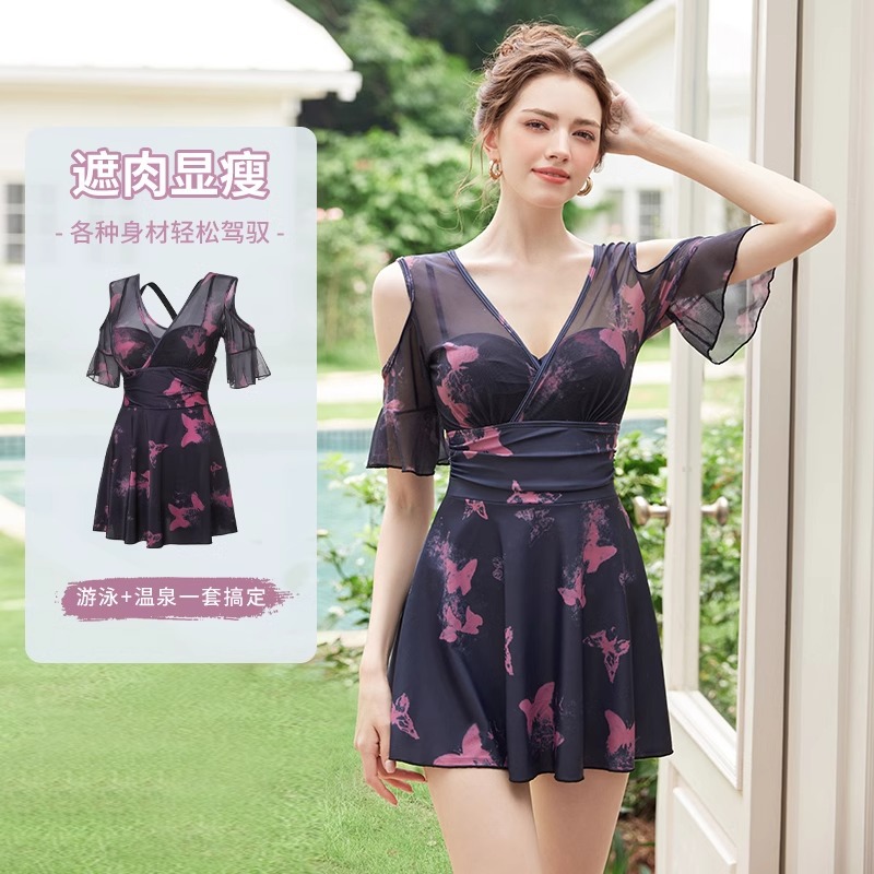 女性用水着 2025 新しいスタイルの控えめなお腹カバー痩身ワンピース女性の人気のセクシーなスカートスタイルのハイエンド温泉水着