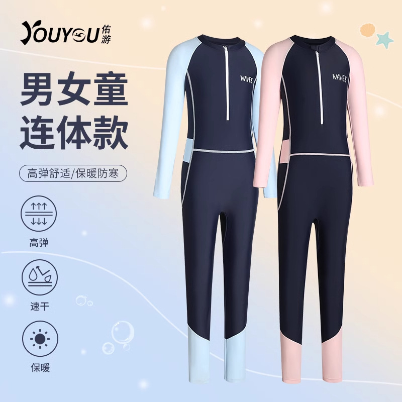 子供の水着のワンピースの長袖のズボンの男女の子供の中学生の2024年の新型の水泳の訓練の装備の卸売り