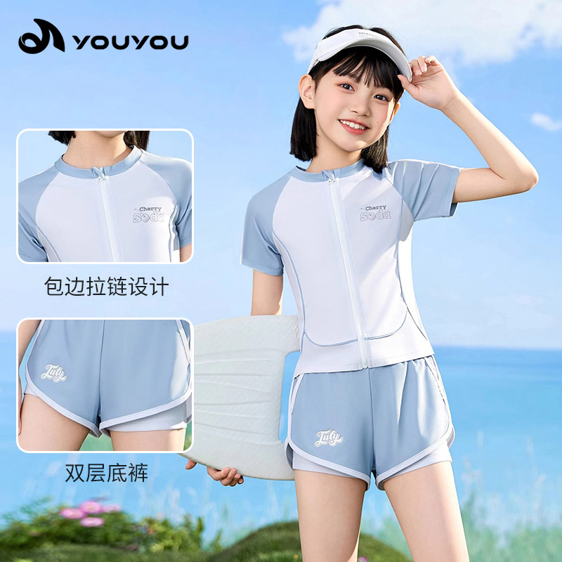 子供水着 女の子 2025年新作 スプリット日焼け止め 2点セット 中学生以上 速乾水着用品