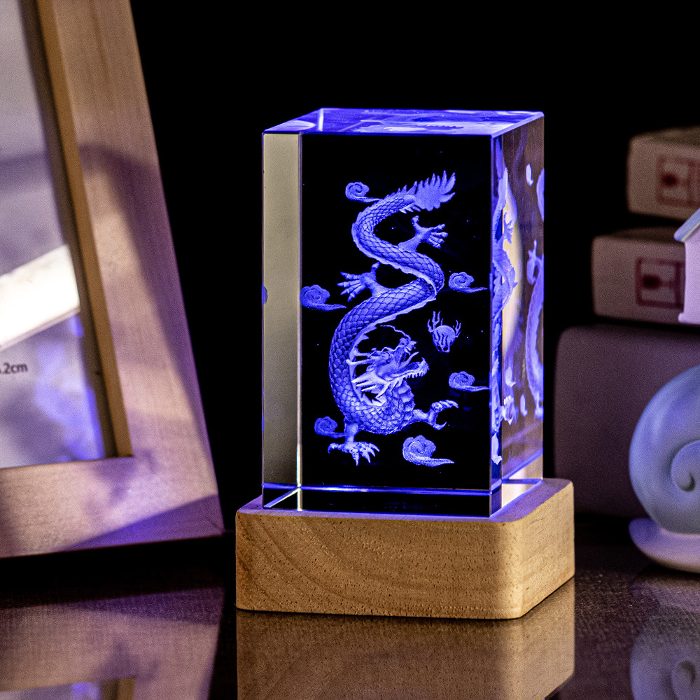 誕生日プレゼントのアイデア絶妙な発光クリスタルコラムナイトライト干支ドラゴンヘビ馬デスクトップ装飾品女の子のための