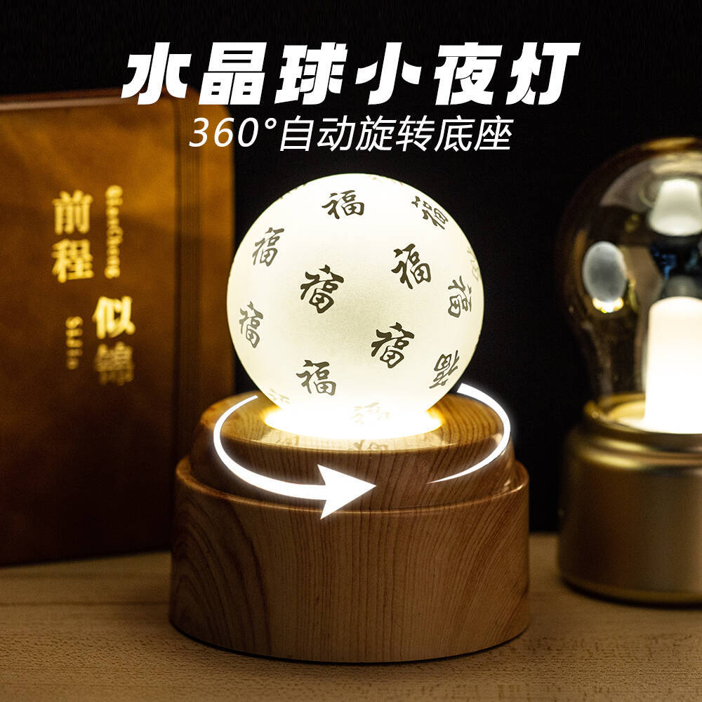 2025新型発光水晶球小夜灯福字は風に乗って波を割って金榜の題名をつけた時に家の置物を運転します。