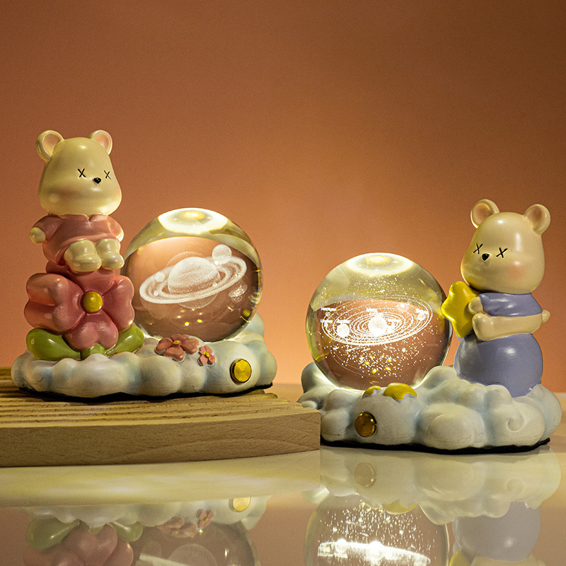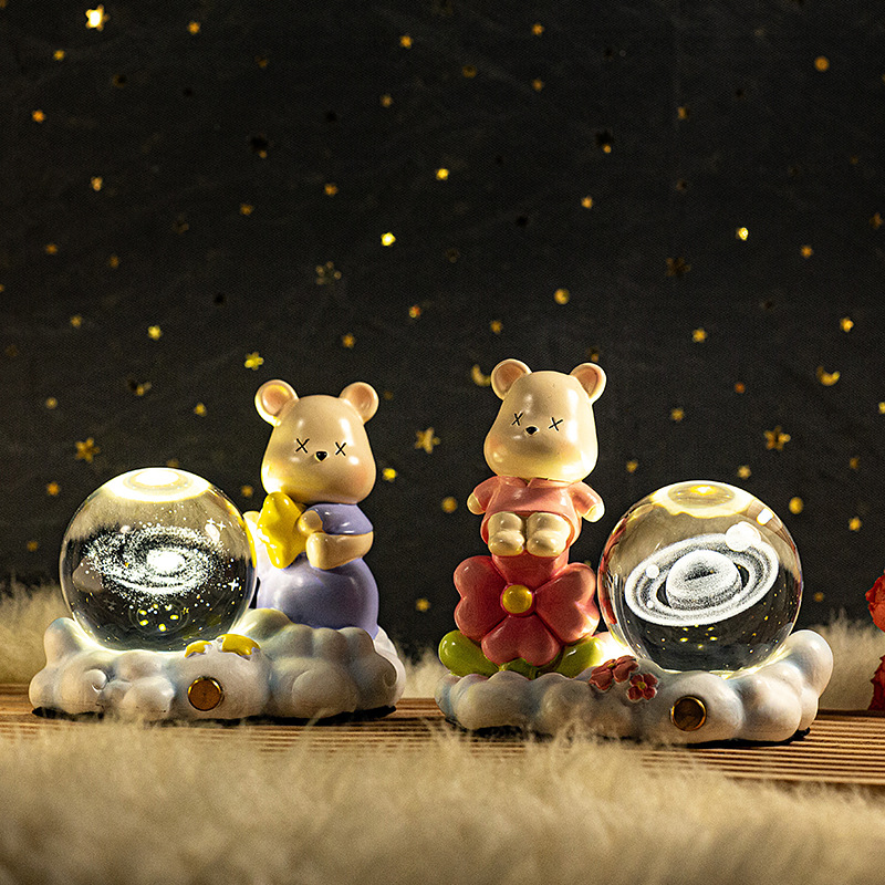 クリエイティブ暴力熊がロケットクリスタルボールを踏むdiy造形内彫刻立体送先生の儀式感がバレンタインデーを飾る