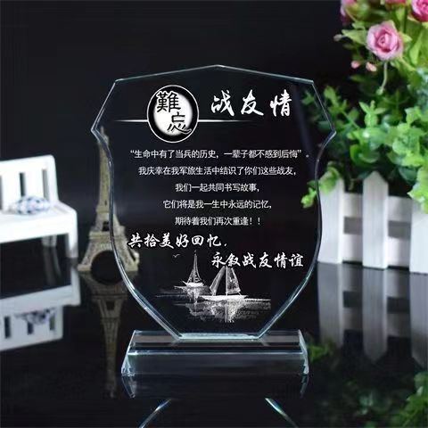 創意実木3d内彫立体模型記念品の置物は戦友の老兵の兄弟愛水晶の誕生日プレゼントを送ります。