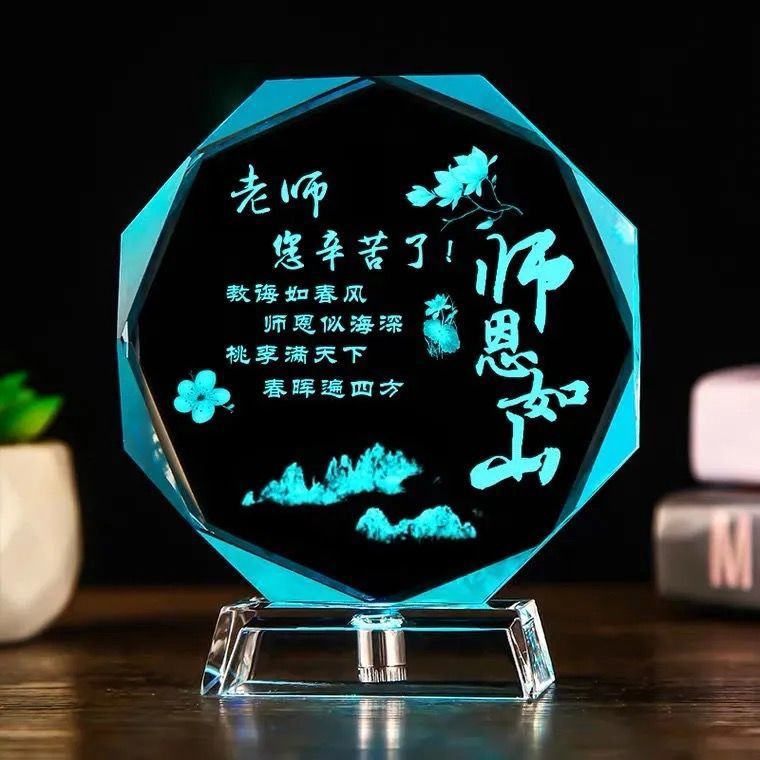 八角形水晶発光高級トロフィーは男子学生の入学シーズンに先生の恩忘れられないバレンタインデー限定定款を送る