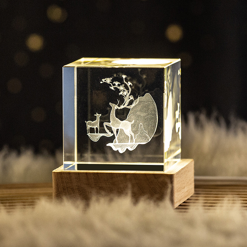 2024新作母の日実用走心水晶デスクトップ小夜灯雰囲気感3d立体内彫刻バレンタインデー