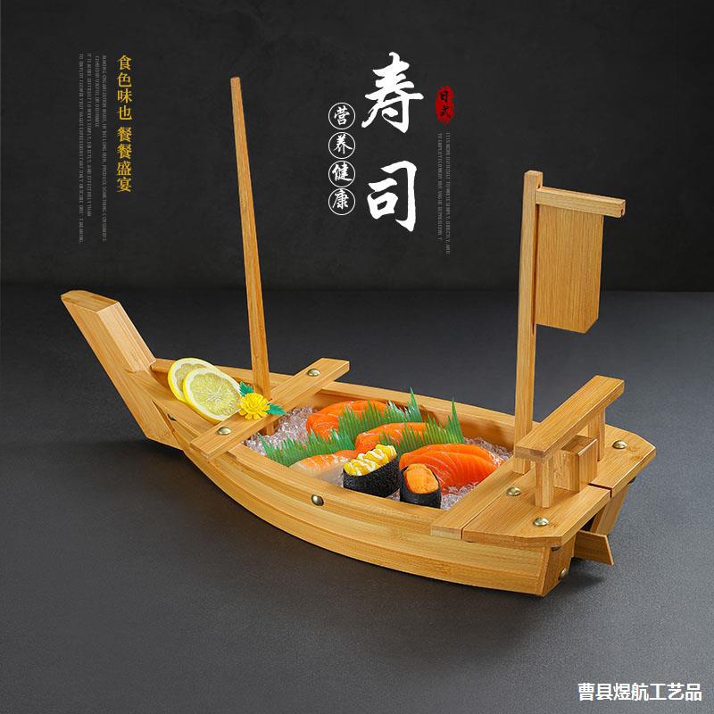 1688創意寿司船刺身船ドライアイス船日本料理海鮮盛り合わせ器刺身木造船龍船竹船