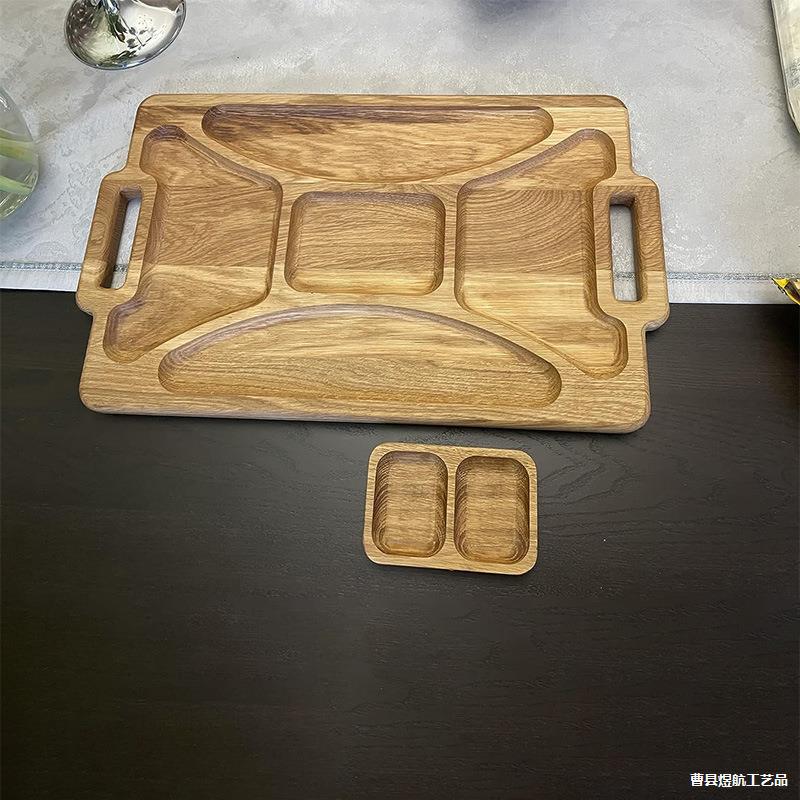 分割とハンドル付きのクロスボーダー木製トレイ、デリベーカリーパンデザートプレート、中国風ホームフルーツドライフルーツディナープレート