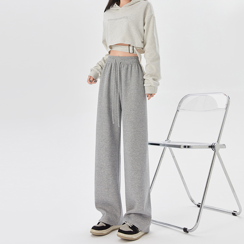 グレーワイドレッグパンツレディース秋の新作パンツレディースストレートハイウエストカジュアルスウェットパンツアメリカンレイジースタイルスポーツパンツ