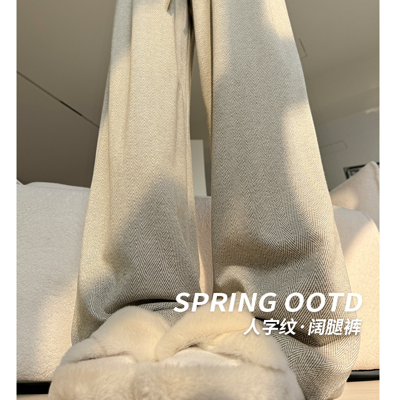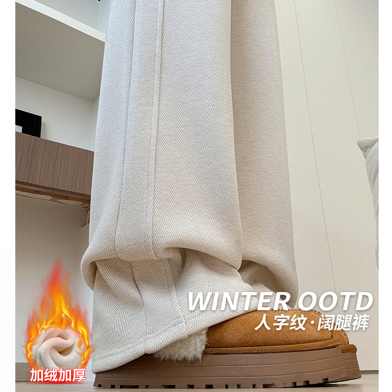 人の字の紋様のベルベットの広脚のズボンの女性の秋冬の新型の垂れ下がっている感じの毛のカジュアルなズボンは明らかにやせていて怠惰な風の狭い版のストレートなズボンです。