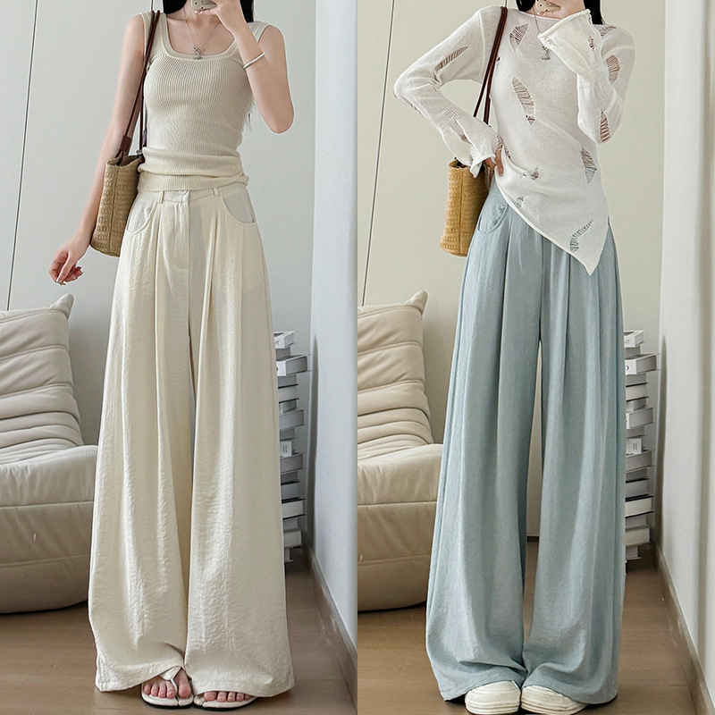 白い太もものズボンの女性の春夏の新型のハイウエストの垂れ下がった感があります。