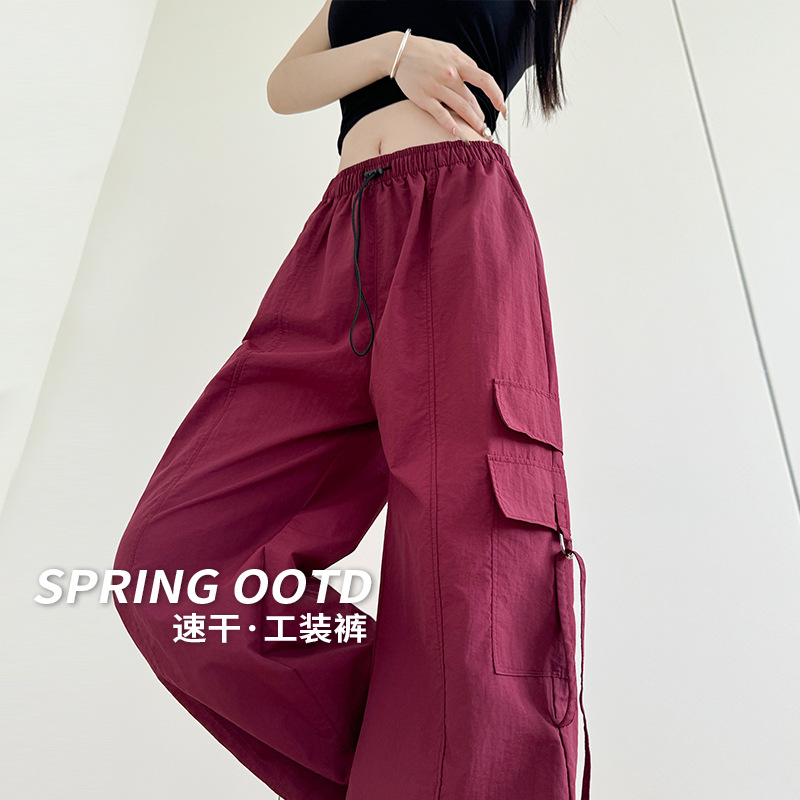 アメリカの速乾工装ズボンの女性の夏の薄いタイプの高腰の垂れ下がった感が現れます。