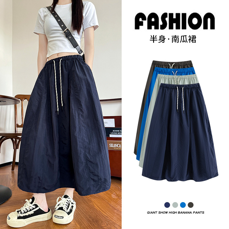 Taslan 和風カボチャスカート レディース 2025年夏新作 スリム ゆったり Aライン アンブレラスカート スプライシング ワークウェア スカート