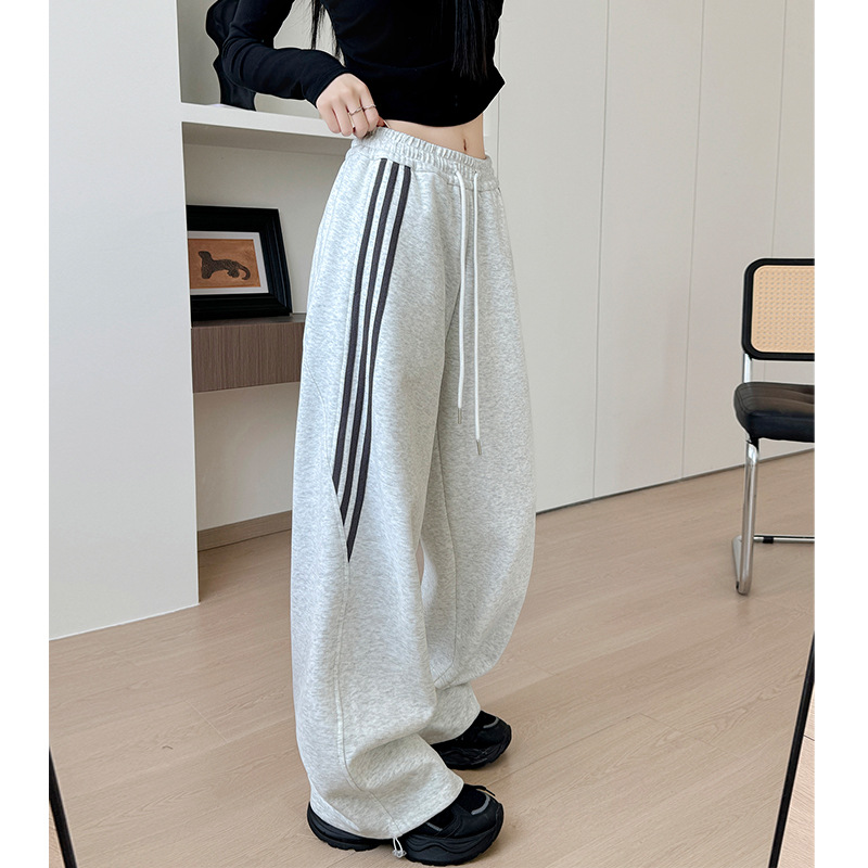 ストライプのスポーツズボンの女性の春秋の新型のハイウエストの怠惰なアメリカ式のワイドレギンスのズボンのカジュアルなゆったりしているのが見えます。