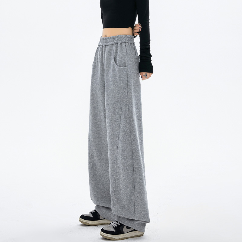 アメリカンスタイルのスポーツパンツ、レディースパンツ、春秋2025、ゆったりとしたカジュアルなバナナパンツ、女性用ハイウエストワイドパンツ、ワイドレッグで着痩せ効果あり