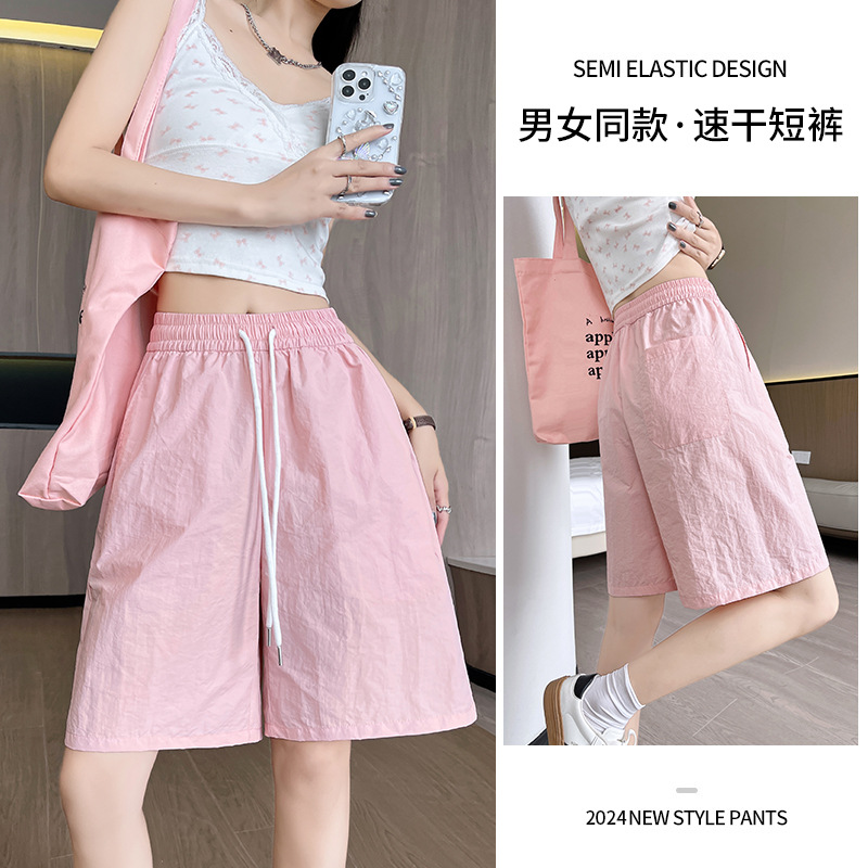 エアコットンピンクスポーツショーツ レディース 夏用 五分丈 カジュアルパンツ ランニング ワイドレッグパンツ おしゃれで脚長効果