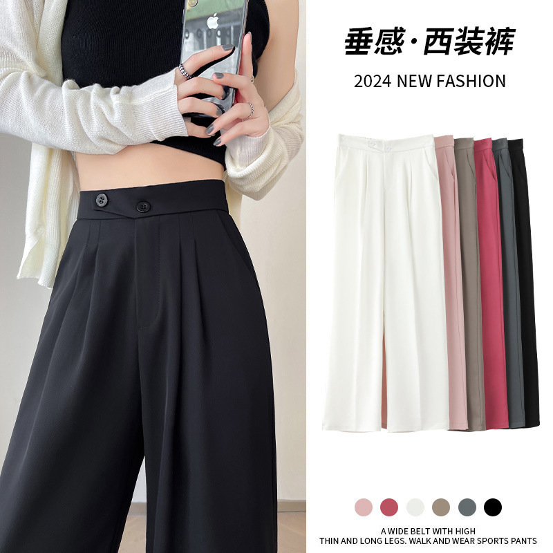 細身ワイドパンツ レディースパンツ 春秋2025新作 カジュアルストレートスーツパンツ レディースハイウエスト小柄女性用パンツ