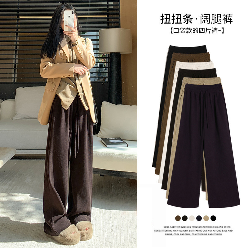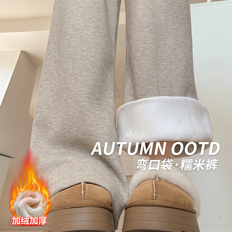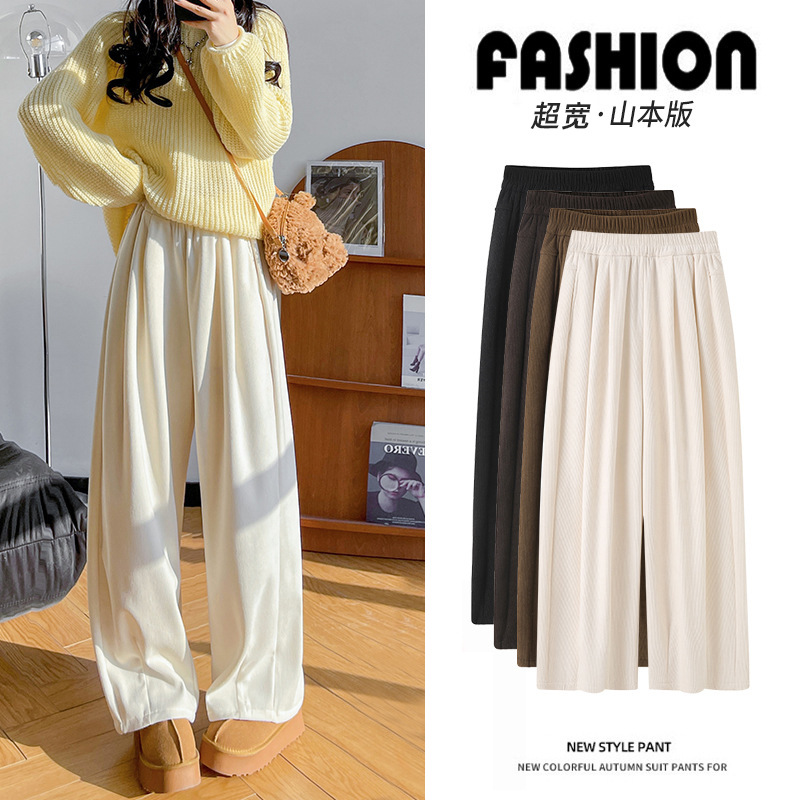 カシミヤとベルベットのワイドパンツの女性のズボン秋冬の新しい高腰垂れ下がった感のカジュアルなズボンのストレートの怠惰な狭いバージョンのもち米のズボン