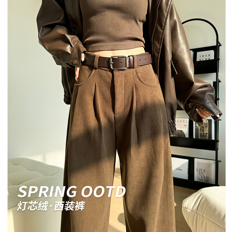白いコーデュロイパンツ レディース 春秋新作 高級感 細見え ワイドパンツ ストレート カジュアル ゆったり風 スーツパンツ