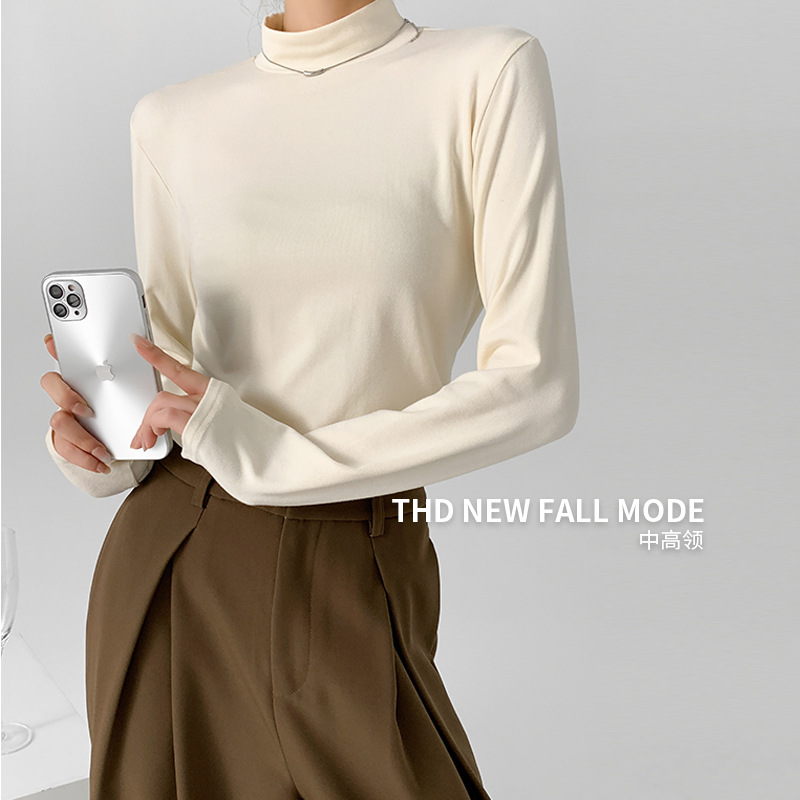 女性用モーダルハーフタートルネックボトリングシャツ、春と秋の新しいスタイル、スリムフィットプロテイン長袖Tシャツ、スリムで多用途なトップス