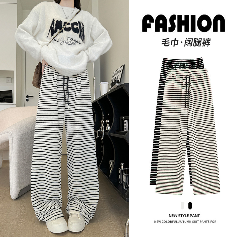 シェニールのワイドレギンスの女性の服装のズボンの子供の春秋の新型のハイウエストのゆったりしているストレートのズボンはやせているレジャーのモップのズボンを現します。