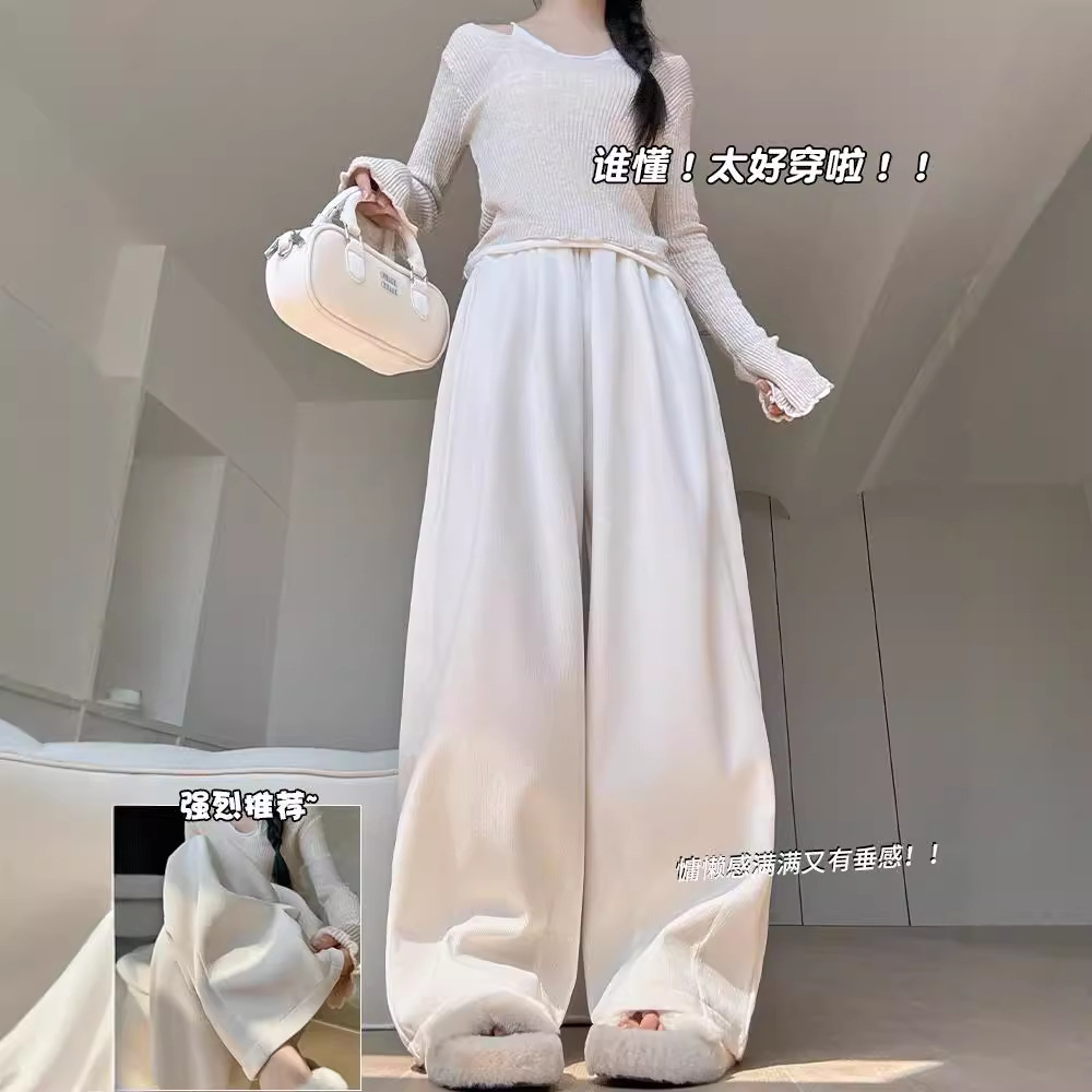人の字の白いズボンの女性の秋冬の新型の怠惰な風のゆったりしているストレートなズボンのカジュアルなベルベットの雪尼爾の広い足のズボン