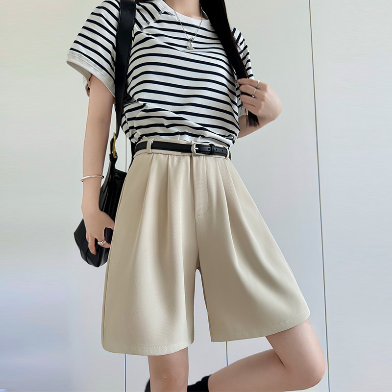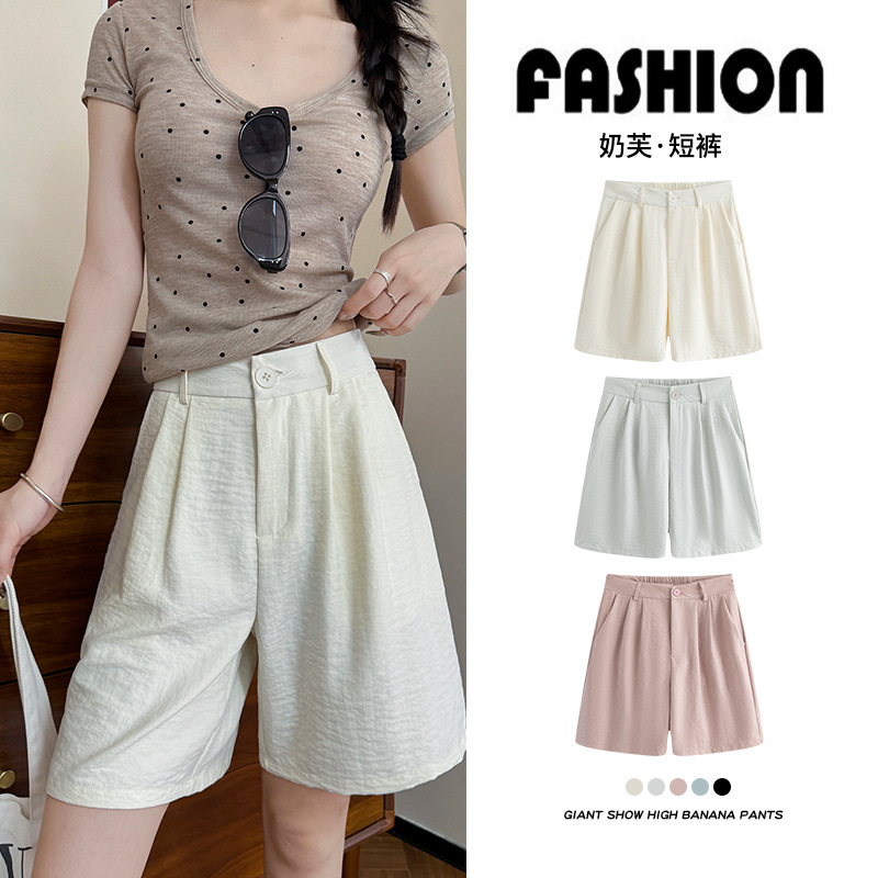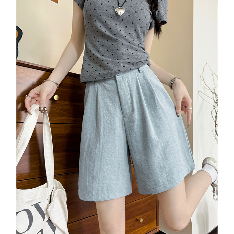 スーツの半ズボンの女性は夏の2025新型の高腰の垂れ下がった感じの広脚の中のズボンのストレートのカジュアルな5分のズボンを着ます。