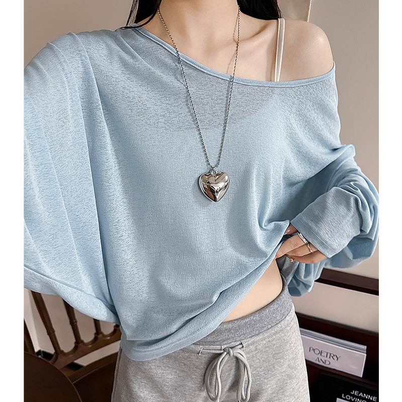 グリーン日焼け止めブラウス女性夏2025新型ゆるいデザイン感は長袖tシャツのニット上着を結びつける