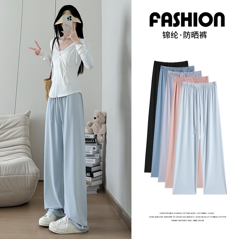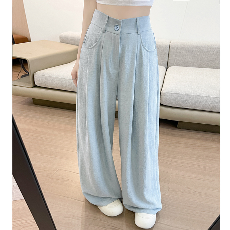 乳芙スーツのワイドレギンスのズボンの夏の薄いタイプの2025新型のハイウエストの垂直感のストレートのズボンはやせているカジュアルな山本のズボンを現します。