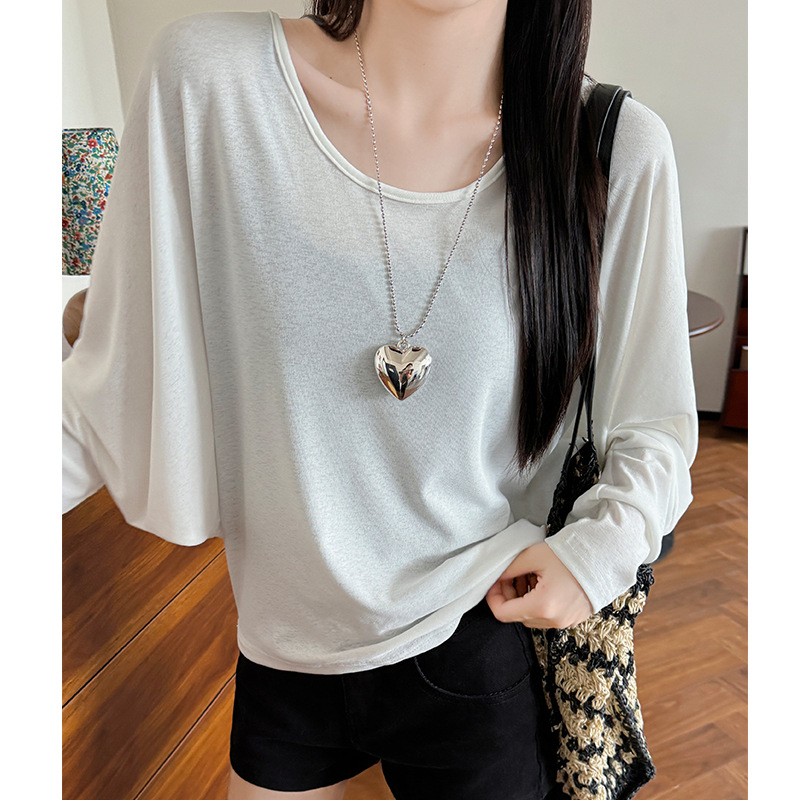 白い長袖のtシャツの女性の夏の2025新型のゆったりしています。