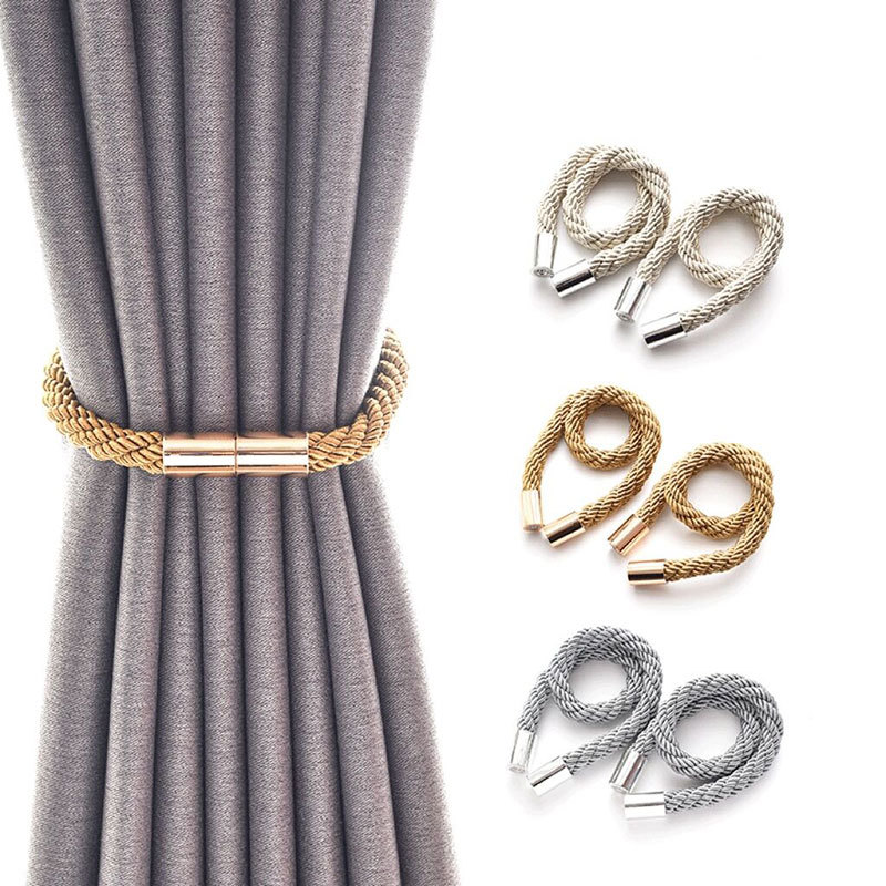 現代のシンプルな新型の綿のひもの原木のカーテンの磁気ボタンは国境を越えて穴を開けないでカーテンのストラップを取り付けないで卸売りします。