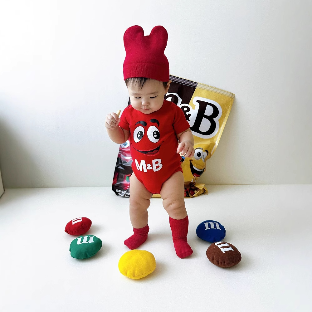 25夏の韓国版ベビーハットスーツinsのチョコレート豆の形の赤ちゃんは半袖のワンピースを着ます。