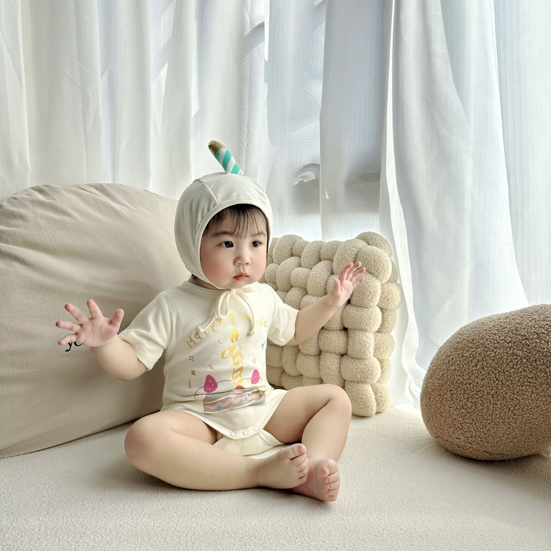 24夏の赤ちゃんの服のセットins韓国版誕生日ケーキの形の半袖のワンピースの赤ちゃんの百歳の服