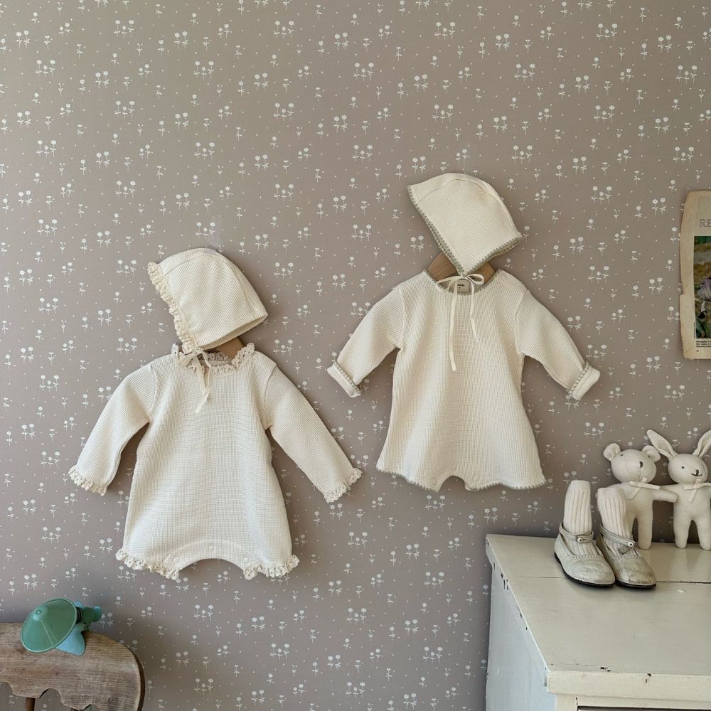 25 春の新韓国スタイル子供ハーレム ins ベビージャンプスーツワッフルレース長袖クローリングスーツ