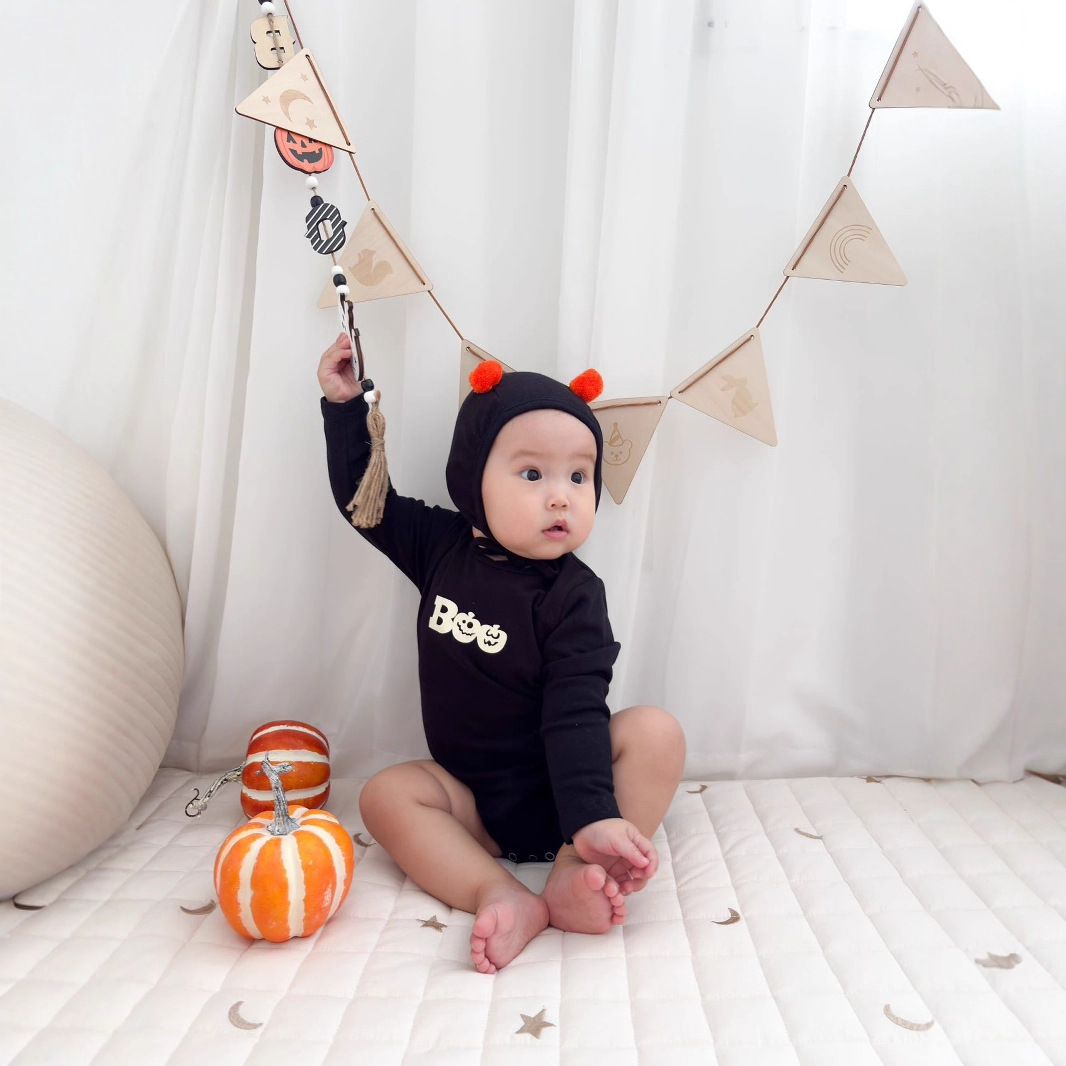 秋のベビージャンプスーツインハロウィンテーマリトルゴーストスタイル韓国風ベビーカバーオールスーツ
