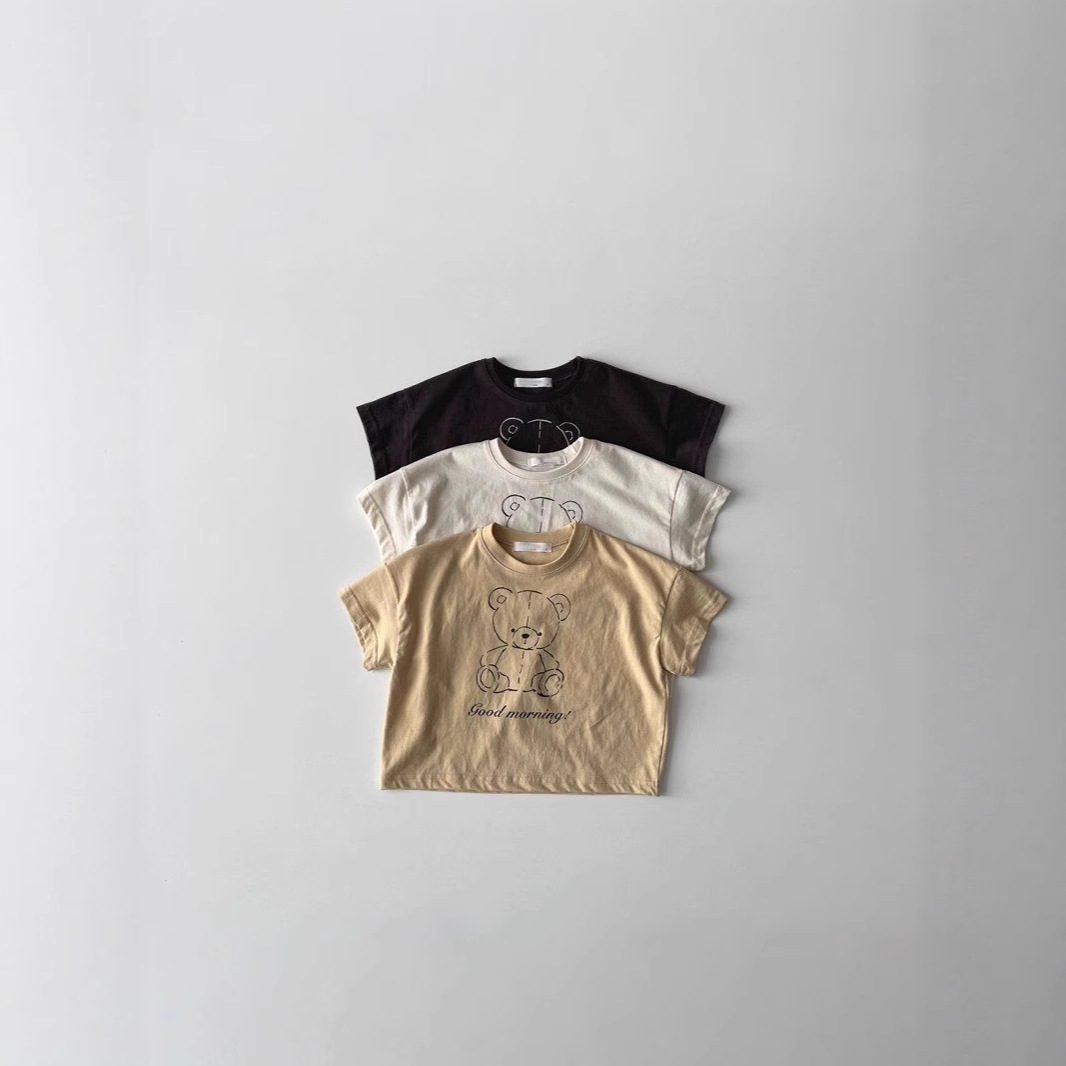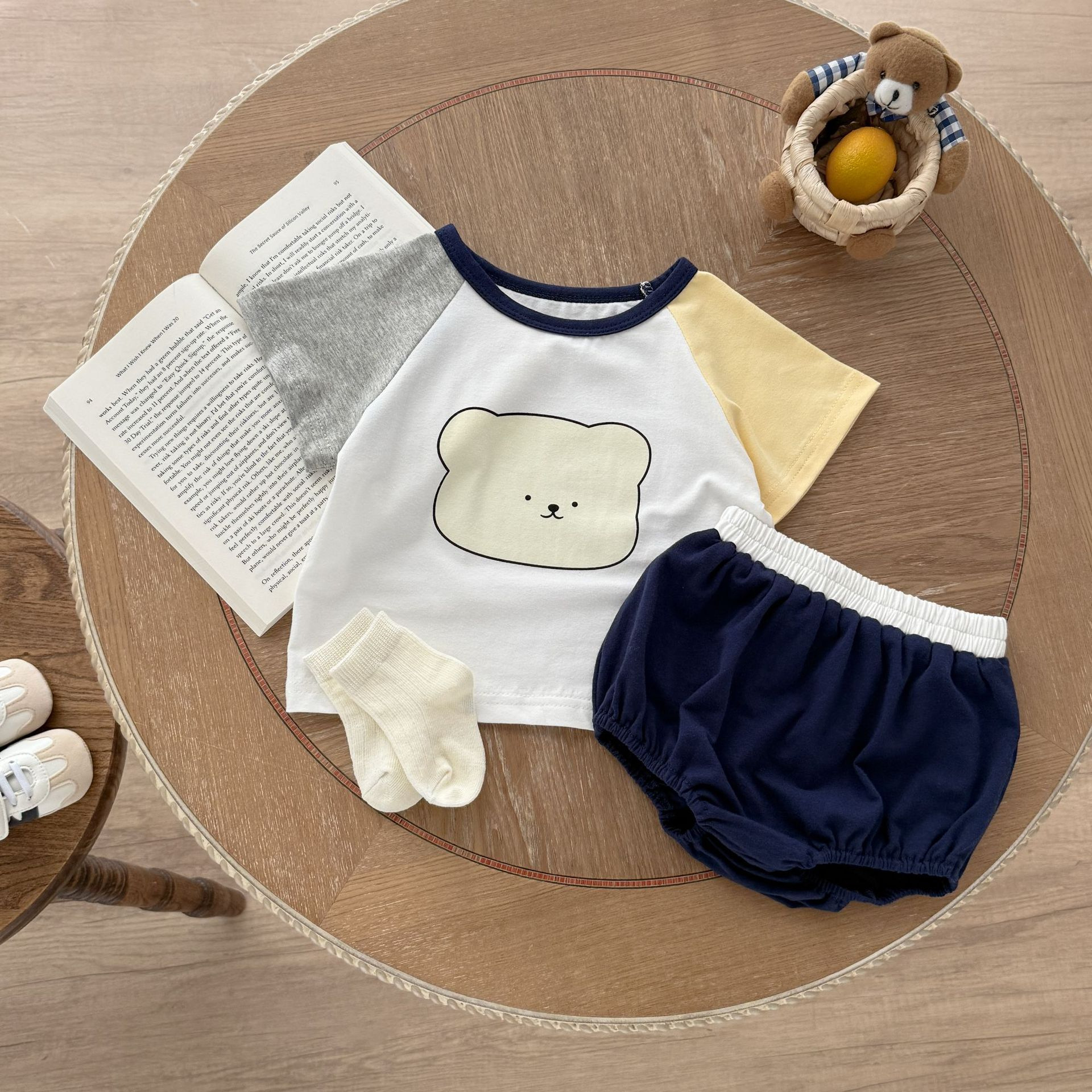 25 夏のインターネットセレブ Tシャツ新しい半袖夏の漫画クマプリント夏服子供のファッショナブルなベビースーツ