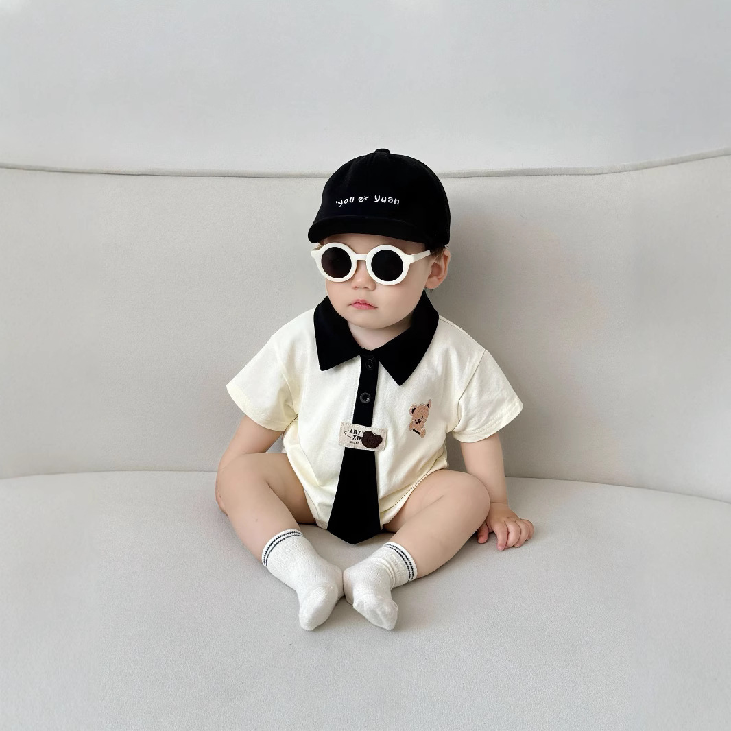 25夏の韓国版の赤ちゃんの半袖の連体の服のinsのファッションの襟の金の赤ちゃんの哈衣の洋風の紳士の金のお尻の服
