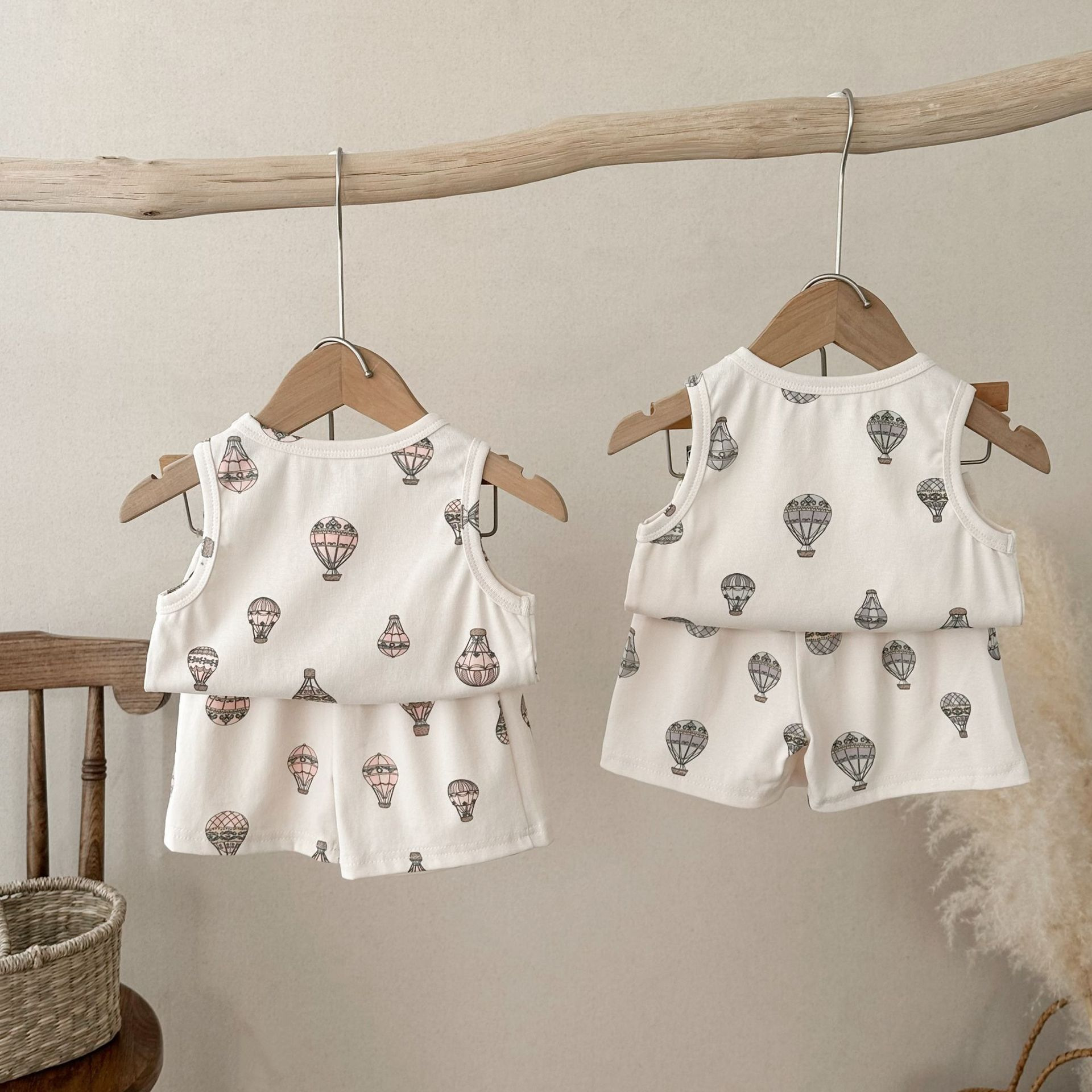 25春夏子供セットins韓国版子供ルームウェア2点セット北欧風熱気球プリントルームウェア