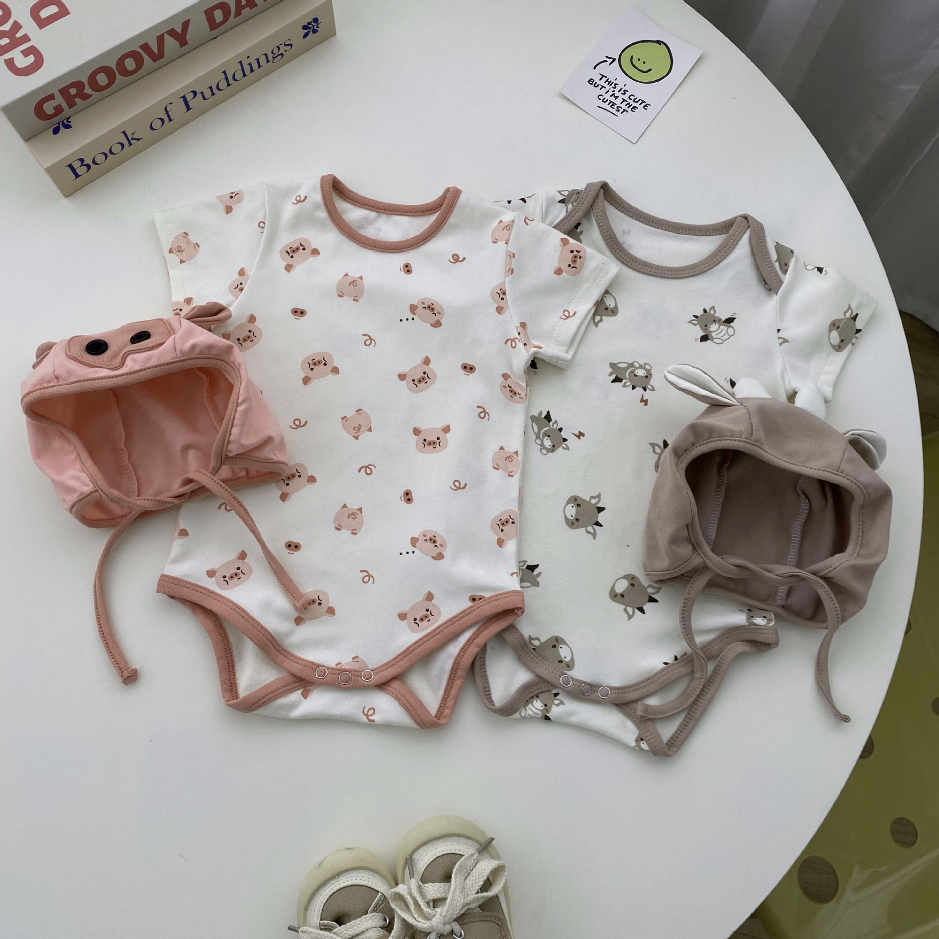 24夏の新型韓国版赤ちゃん連体服ins卵型ストラップ赤ちゃん百歳服セット