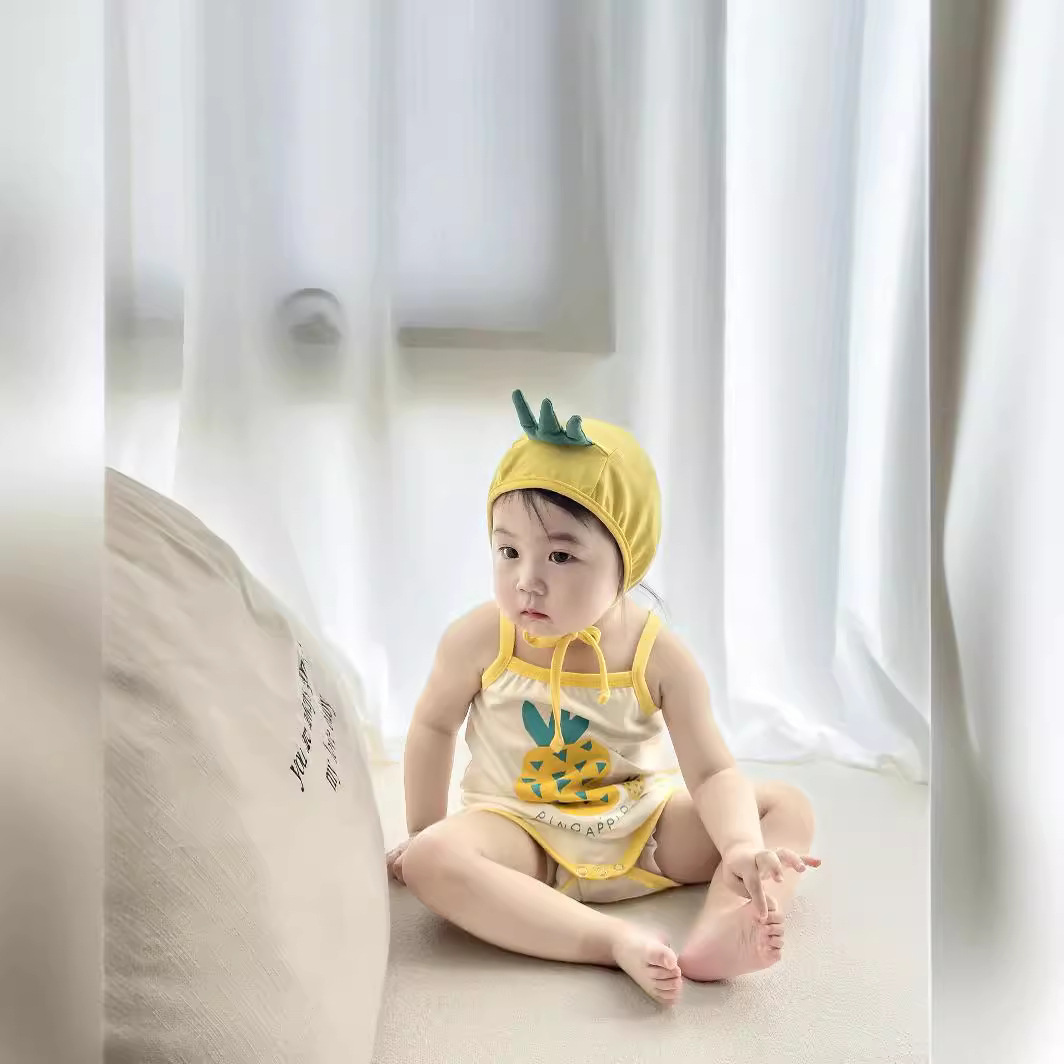 24夏の韓国版の赤ちゃんの連体服insの新型パイナップルの形のサスペンダーの赤ちゃんのお尻の服のスーツ