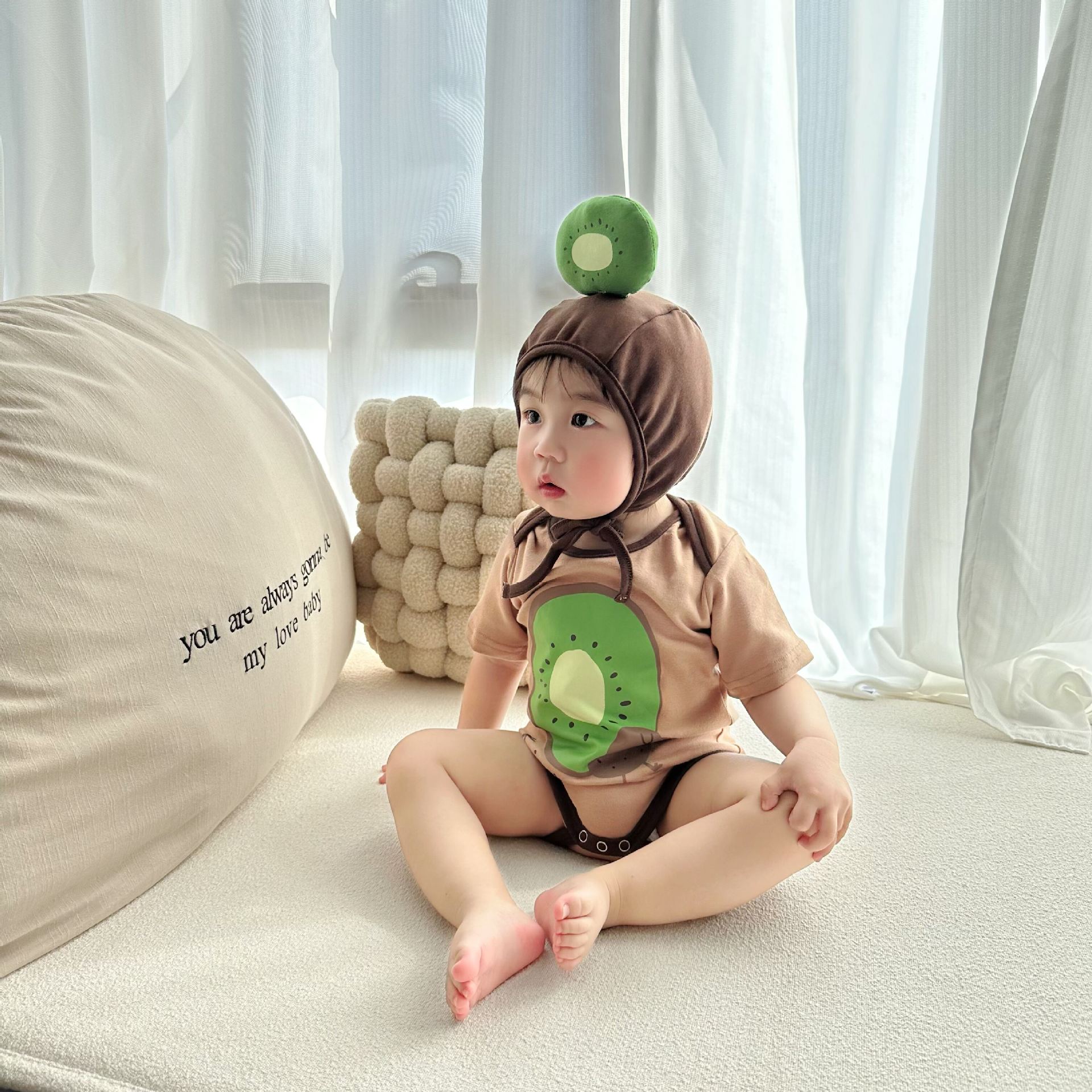 25 新しい夏の韓国スタイルベビージャンプスーツ、インスタイルキウイフルーツプリント半袖ロンパース