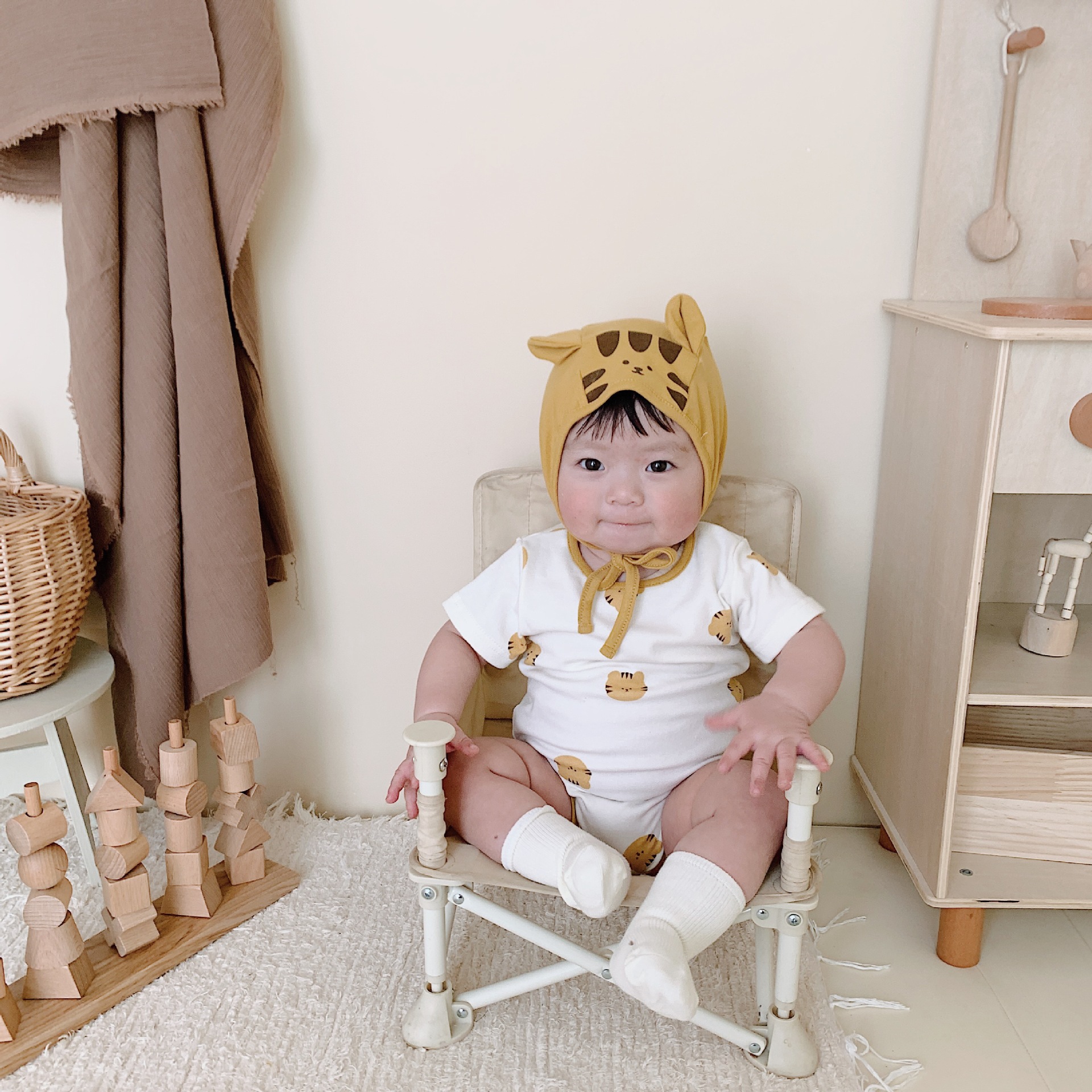 2025春夏新作韓国風ロンパース、インスタイルベビーワンピーススーツ、かわいいトラ柄のカバーオール
