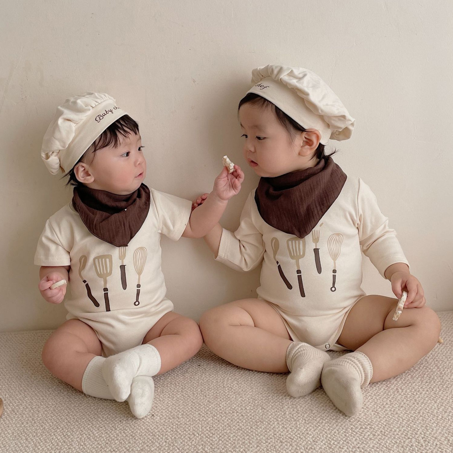 インス新作ベビーシェフ風ロンパース2025春夏新作子供用ワンピーススーツ子供用カバーオール