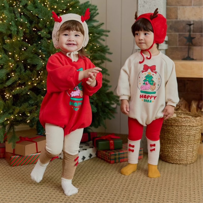 2025年春新作 韓国風クリスマス服 インス風 子供用フェスティバル服 ベビー長袖ロンパースセット 厚手