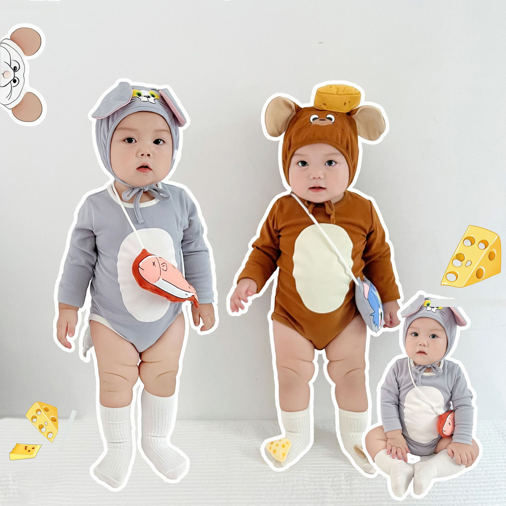 25秋のネットレッドの赤ちゃんはinsモデルの子猫のネズミの形で帽子をかぶって秋冬モデルの子供服を着ます。