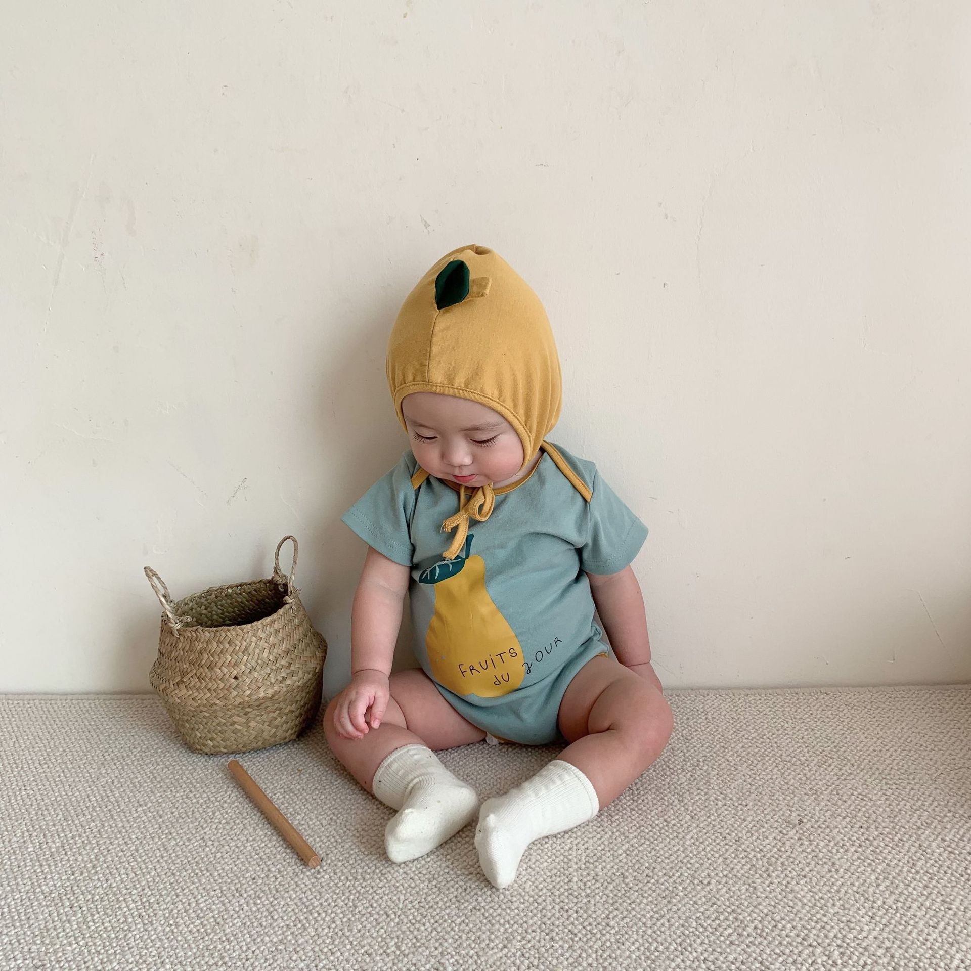 2024夏の新型梨子プリント半袖ハッ服ins風赤ちゃん連体服セット赤ちゃんのお尻服